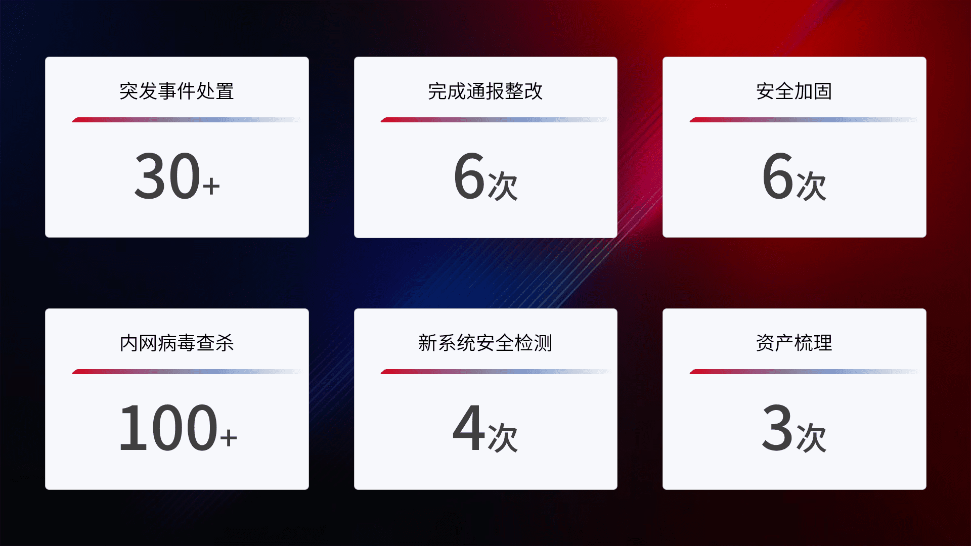 网络安全加固与风险管理:通过技术加固手段,,如加强区域隔离,,,,缩减攻击内网横向移动的范围;优化现有网络安全管理制度,,,降低网络威胁暴露面,,,减少被黑客攻击的可能性。。